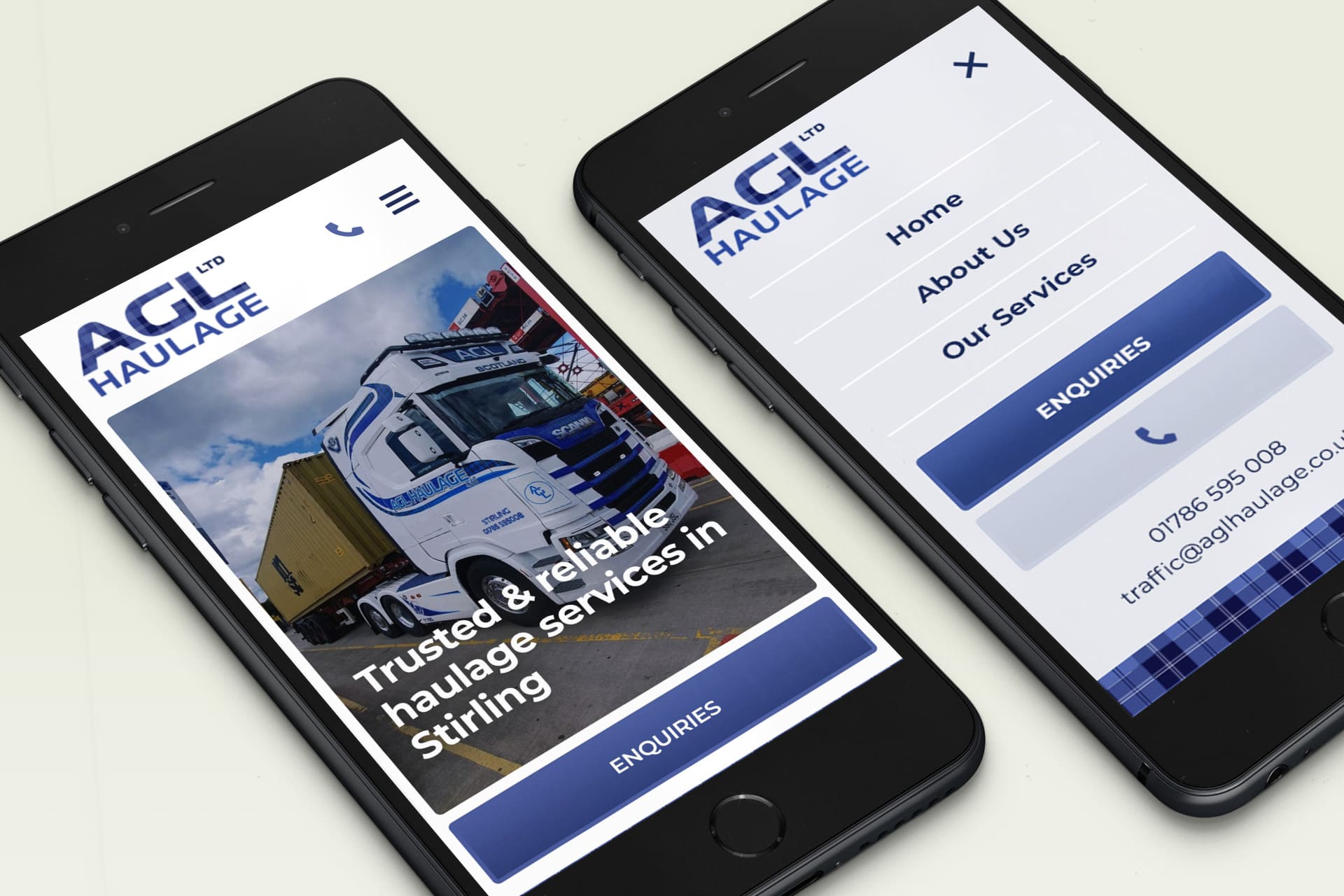 Website for AGL Haulage, providing trusted and reliable haulage services in Stirling