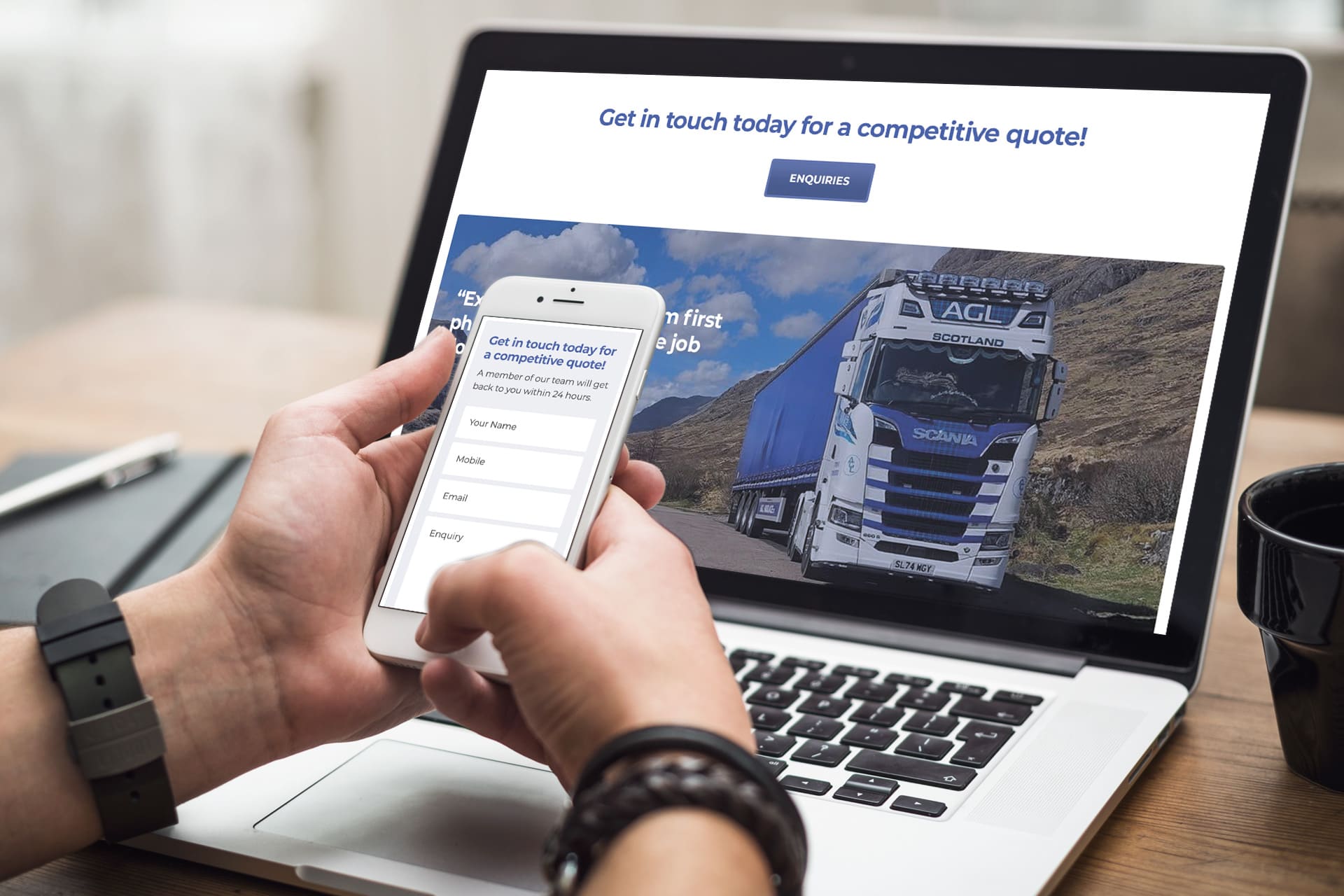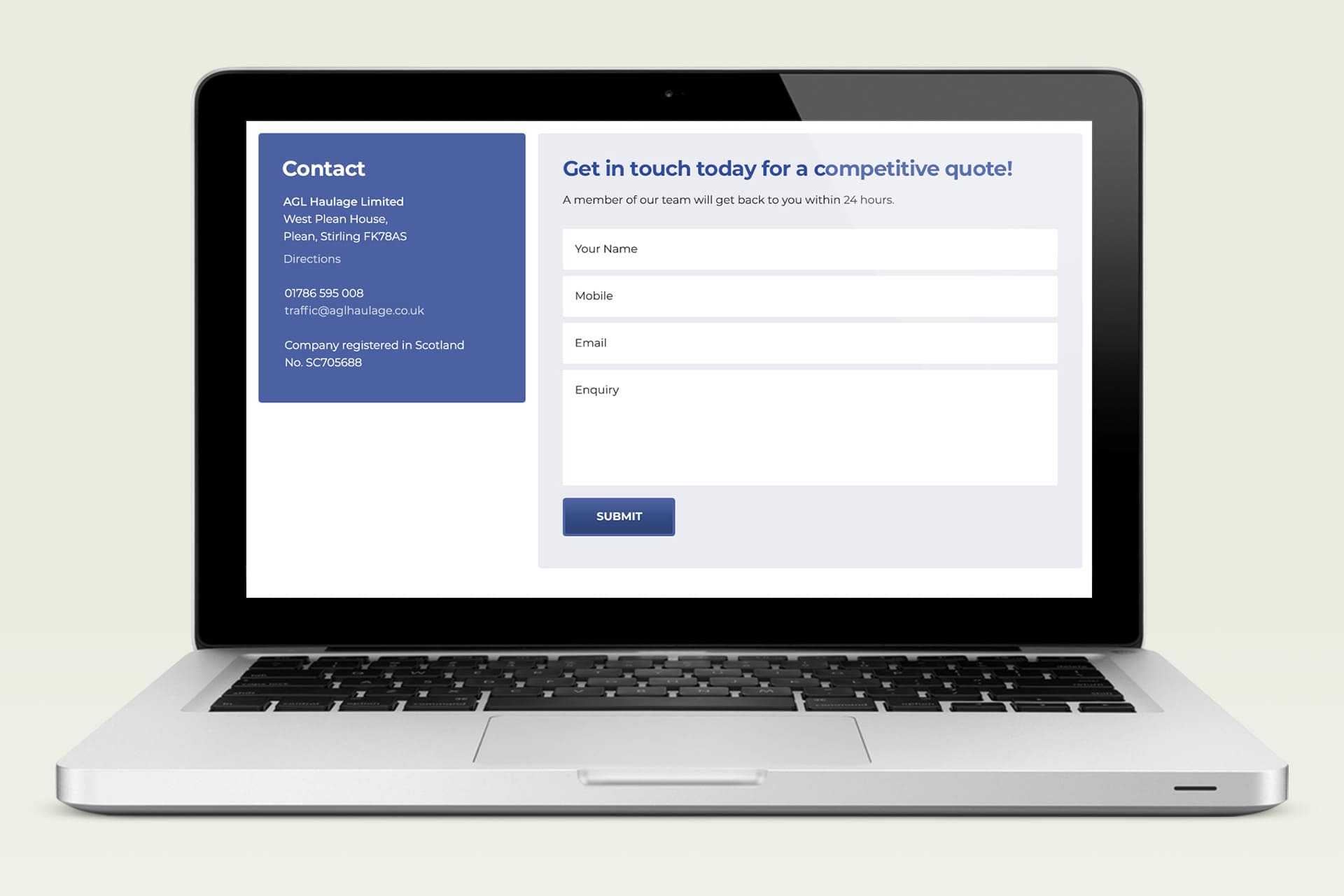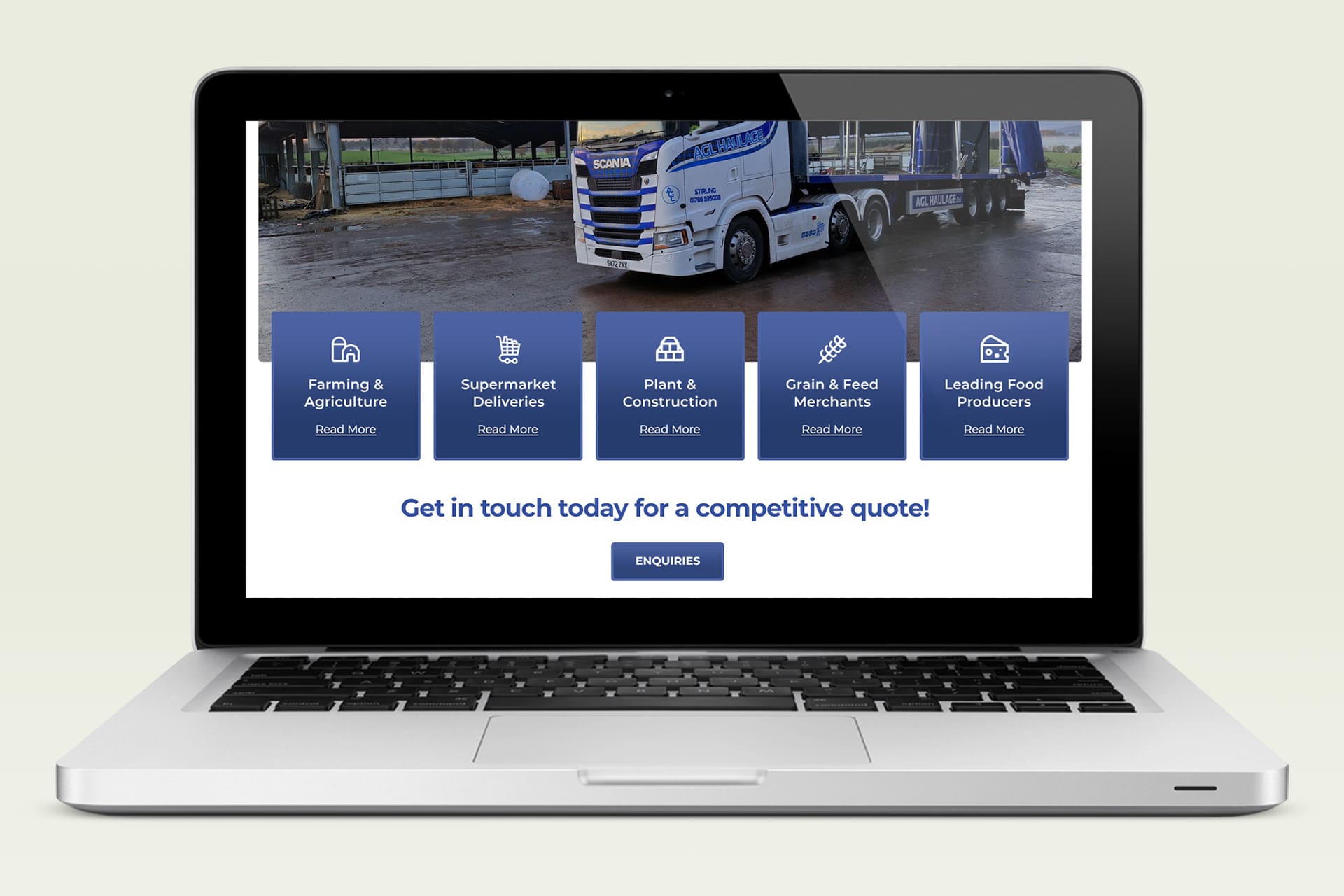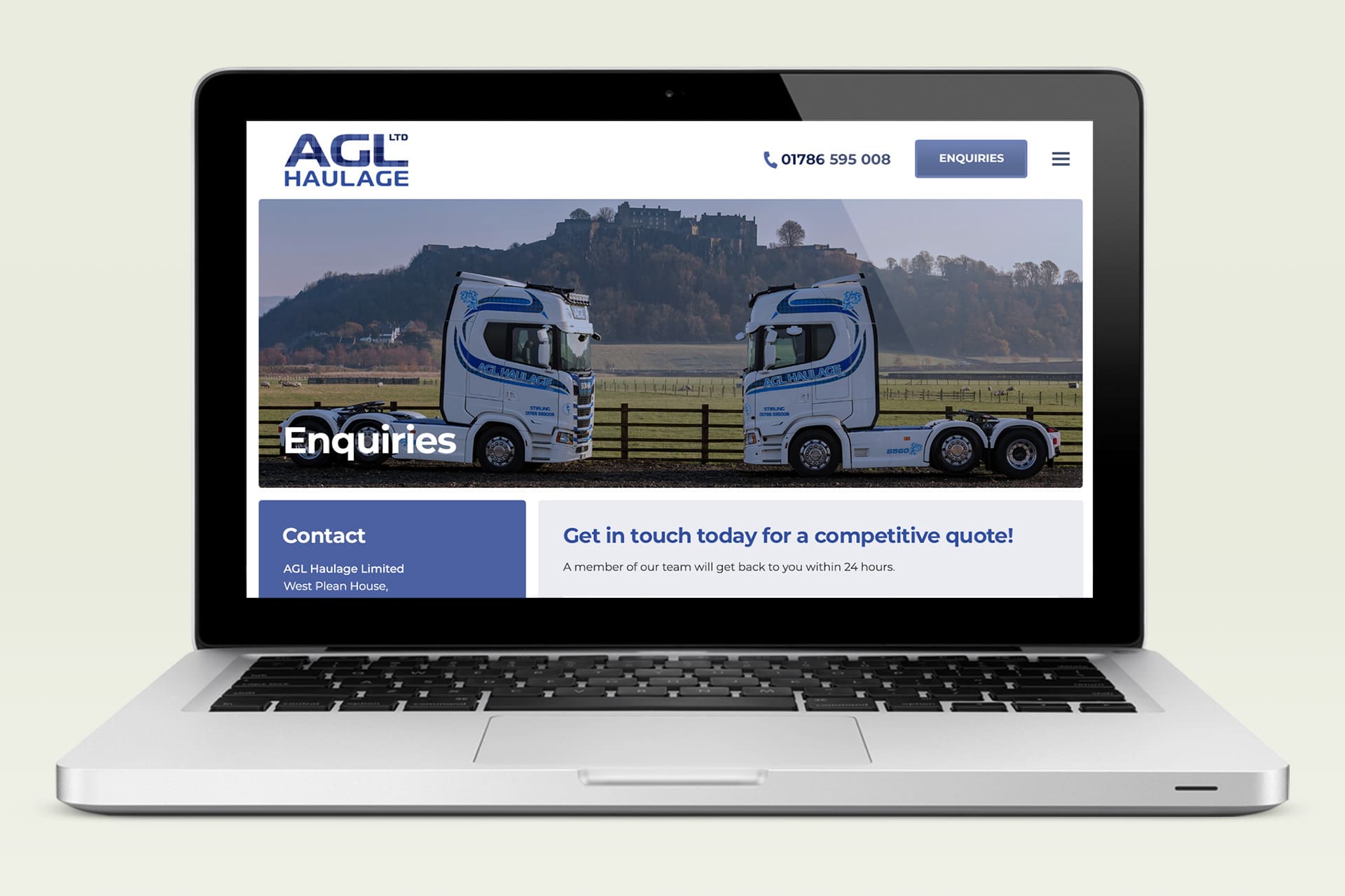 The look and feel of the new site was based on the existing AGL Haulage branding and designed to complement their other promotional materials. We compiled a library of images of the fleet with their striking blue tartan livery which we used to showcase the wide range of services and sectors AGL Haulage work across providing an engaging visual representation of the company.